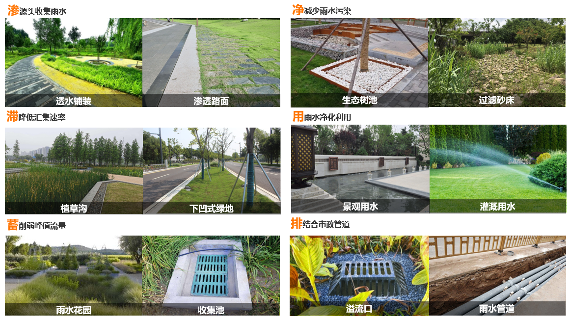 遵循生態(tài)優(yōu)先原則,通過(guò)“滲、滯、蓄、凈、用、排”等方式,將雨水的滲透、滯留、集蓄、凈化、循環(huán)使用和排水密切結(jié)合,統(tǒng)籌考慮內(nèi)澇防治、徑流污染控制、雨水資源化利用和水生態(tài)修復(fù)等多個(gè)目標(biāo),進(jìn)而實(shí)現(xiàn)城市更宜居、更安全、更節(jié)能、更生態(tài)。