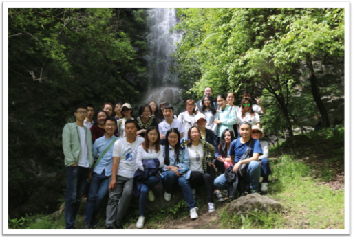 6日早上,前一天還是黃沙漫天的天空已然蔚藍(lán)透徹,8:30分準(zhǔn)時(shí)由公司出發(fā),一路歡歌到達(dá)目的地,在郁郁蔥蔥的水苑山莊吃過具有鄉(xiāng)野特色的午飯后,興奮的同事們沿著幽靜的狐貍溝溯流而上直達(dá)仙女瀑布,瀑布水流潺潺,妖嬈雋秀,沁人心脾。