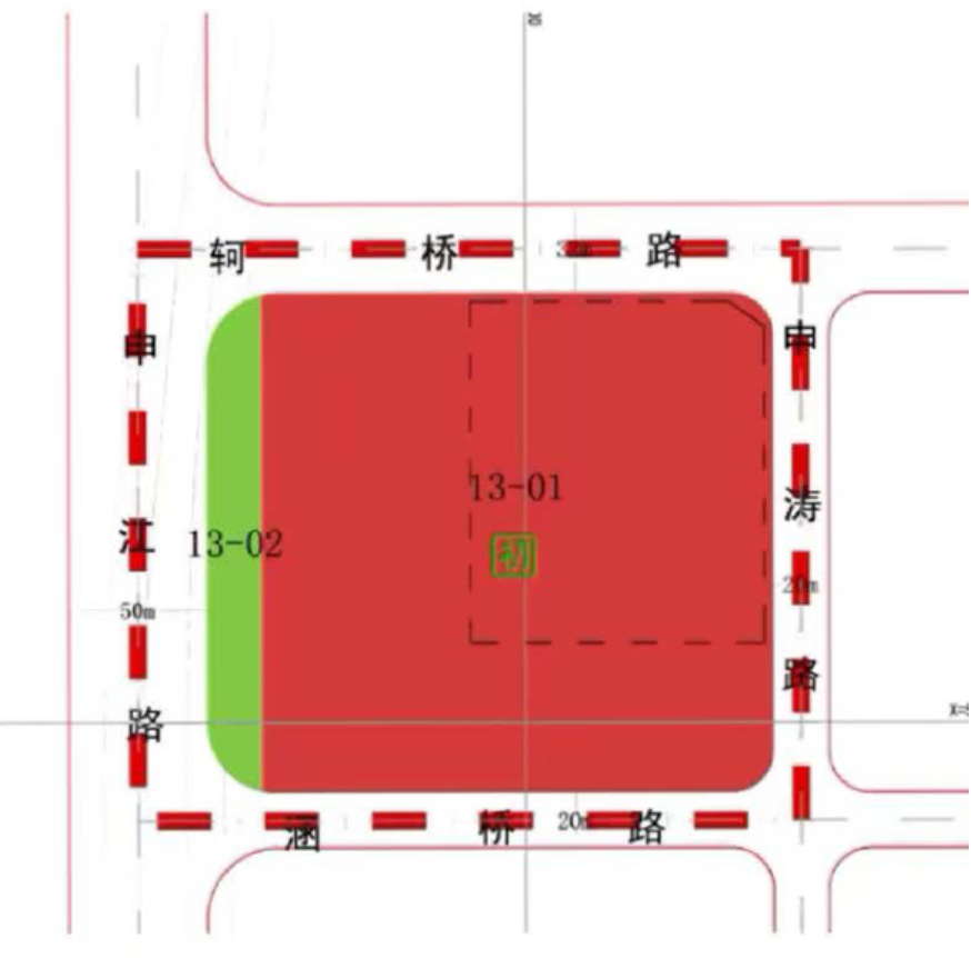 在《上海市浦東新區(qū)金橋汽車產(chǎn)業(yè)制造、研發(fā)、配套單元(Y000701)控制性詳細(xì)規(guī)劃13街坊局部調(diào)整》(2023年3月公示稿)中,13-01地塊的規(guī)劃條件為:用地面積3.3公頃,用地性質(zhì)為商辦和初中混合用地(C8Rs3),容積率3.4,建筑高度100米。