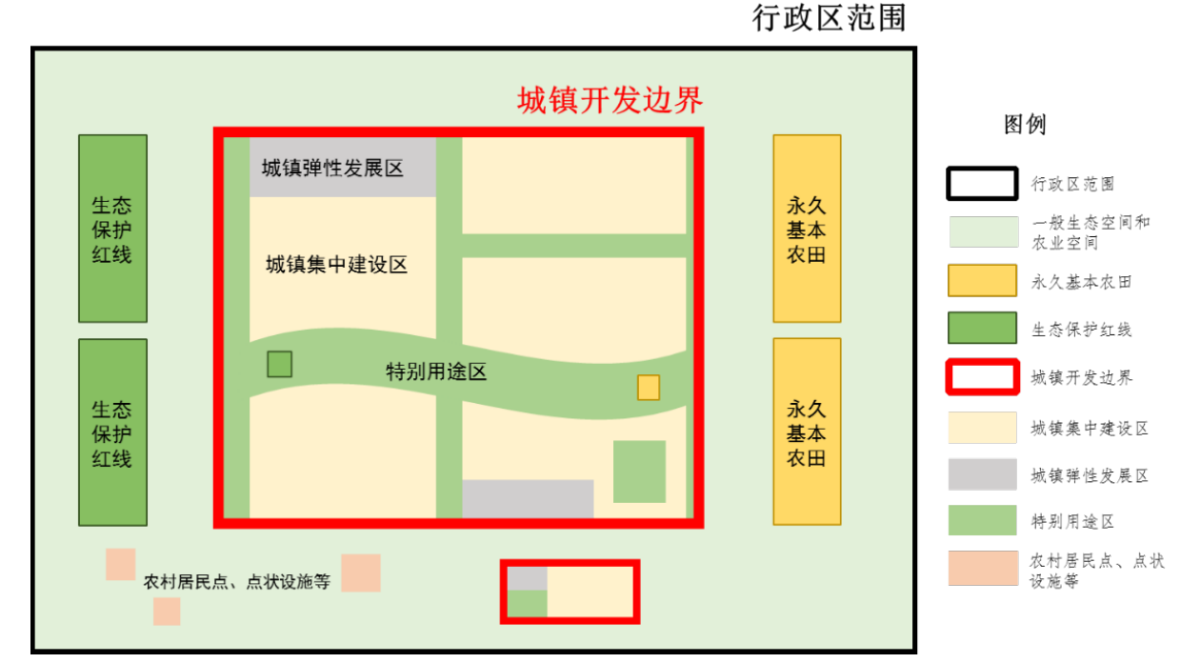 圖 1 城鎮(zhèn)開(kāi)發(fā)邊界示意圖(圖源:市級(jí)國(guó)土空間總體規(guī)劃編制指南(試行)附錄G城鎮(zhèn)開(kāi)發(fā)邊界劃定要求)