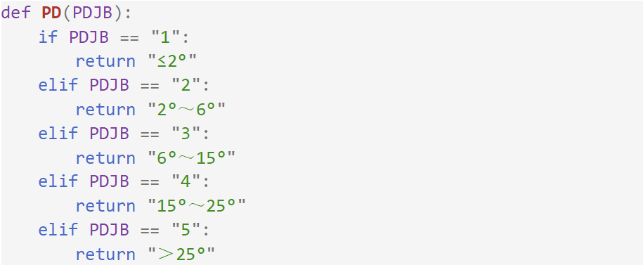 在耕地坡度級(jí)別中,通過(guò)耕地的坡度級(jí)別反算耕地坡度區(qū)間: