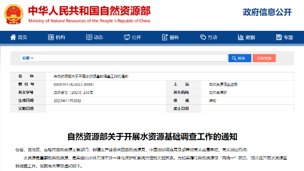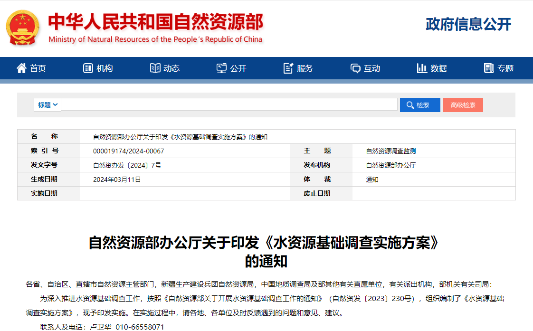水是生命之源,是基礎(chǔ)性自然資源和戰(zhàn)略性經(jīng)濟(jì)資源,是生態(tài)環(huán)境的控制性要素,在經(jīng)濟(jì)、社會(huì)發(fā)展和國家安全中具有極其重要的地位。同時(shí),水資源是實(shí)施山水林田湖草沙一體化保護(hù)和系統(tǒng)治理的關(guān)鍵因素,為切實(shí)履行自然資源部“兩統(tǒng)一”職責(zé),2023年11月20日自然資源部發(fā)布《自然資源部關(guān)于開展水資源基礎(chǔ)調(diào)查工作的通知》(自然資發(fā)〔2023〕230號)文件,于2024年3月11日自然資源部發(fā)布《自然資源部辦公廳關(guān)于印發(fā)水資源基礎(chǔ)調(diào)查實(shí)施方案的通知》(自然資辦發(fā)〔2024〕7號)文件,要求各地方實(shí)施水資源基礎(chǔ)調(diào)查工作。