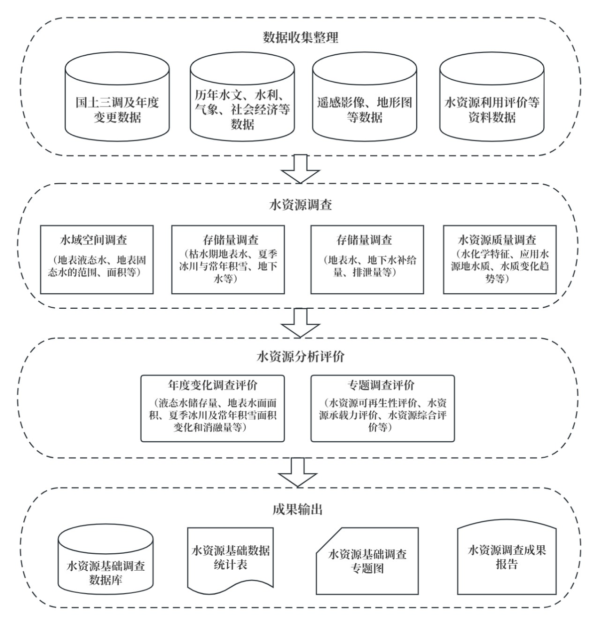 利用水利部門、氣象部門等獲取地表和地下水資源量相關(guān)數(shù)據(jù),開展全國水資源周期和年度調(diào)查評價(jià),掌握各?。▍^(qū)、市)各流域的水資源量。以收集、整理、匯總、分析已有資料為主,以測繪、勘察、試驗(yàn)、監(jiān)測等工作為輔。采用校驗(yàn)后的水文模型、地下水模型等開展模擬,支撐調(diào)查分析。