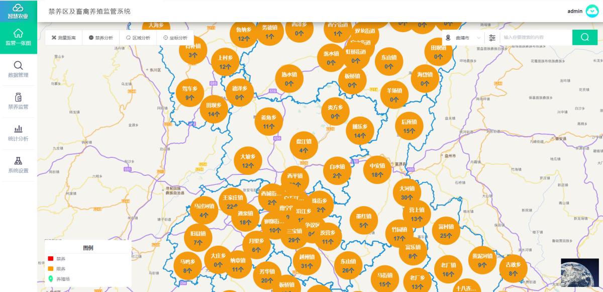 配合開展養(yǎng)殖污染綜合治理、保護(hù)和改善生態(tài)環(huán)境工作,整合禁限養(yǎng)區(qū)與養(yǎng)殖企業(yè)信息至禁限養(yǎng)區(qū)+養(yǎng)殖監(jiān)管平臺(tái),通過一張圖展示、大數(shù)據(jù)分析、監(jiān)督執(zhí)法工作管理、專題數(shù)據(jù)挖掘等技術(shù),幫助監(jiān)管部門優(yōu)化養(yǎng)殖企業(yè)結(jié)構(gòu)和布局,加強(qiáng)重點(diǎn)區(qū)域、重點(diǎn)流域的環(huán)境保護(hù)。